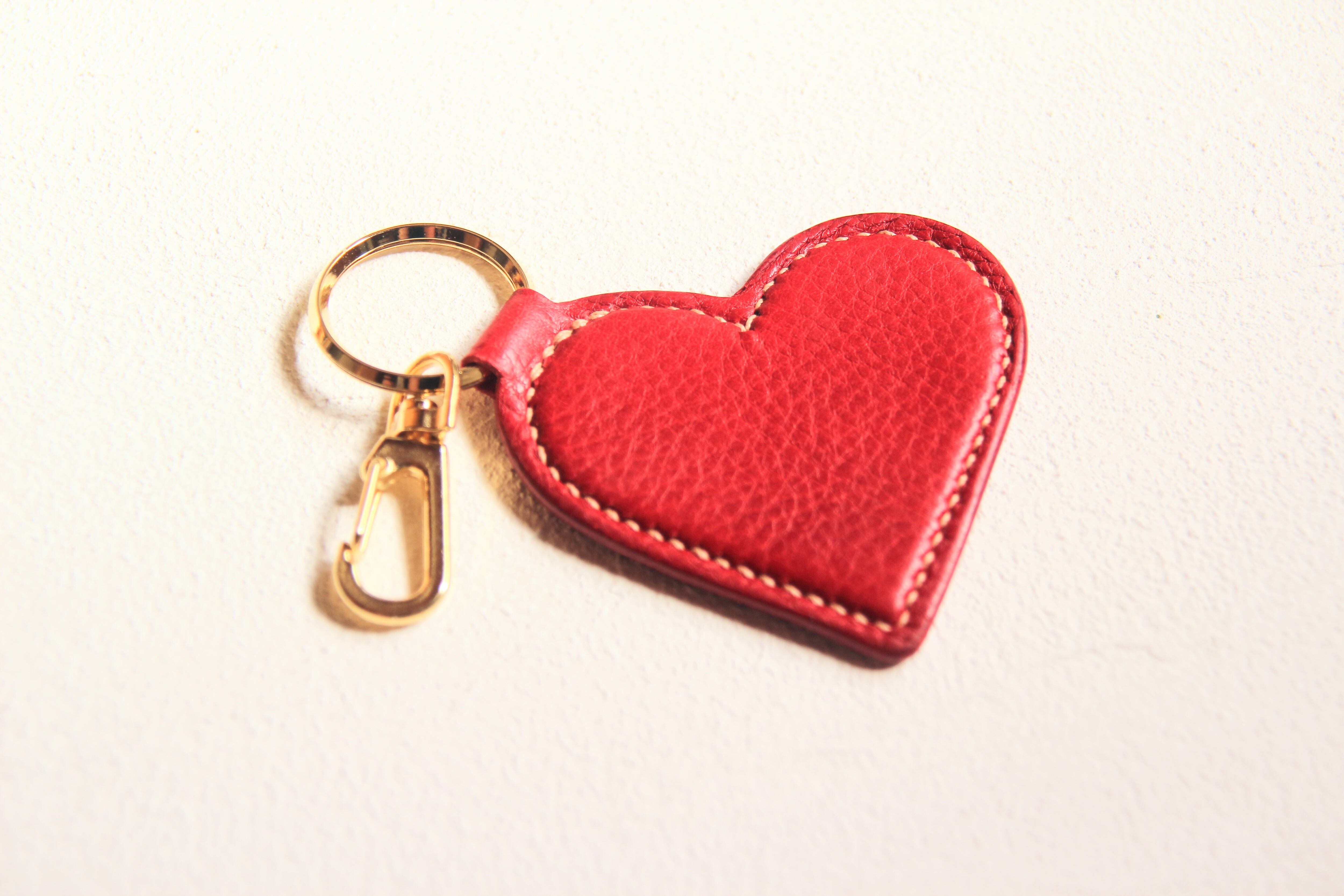 イタリアの手触りがよいレザーを使用した、ハート型のキーリング。